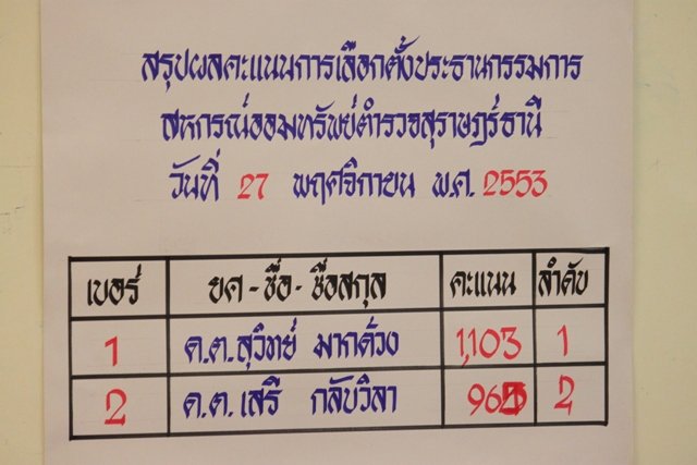 คณะกรรมการดำเนินการชุดที่ 45 ได้กำหนดวันประชุมใหญ่สามัญประจำปี 2553 เมื่อวันที่ 27 พฤศจิกายน 2553 ณ ห้องทักษิณาลัย โรงแรมสยามธานี อ.เมื่อง จ.สุราษฎร์ธานี ได้รับเกียรติจาก พล.ต.ต.เทศา ศิริวาโท รองผู้บัญชาการตำรวจภูธรภาค 8 /ประธานที่ปรึกษากิตติมศักดิ์ เป็นประธานในพิธีเปิดการประชุมในครั้งนี้ และมี พ.ต.ท.พงศธร เกื้อเส้ง เป็นประธานกรรมการเลือกตั้ง ได้ดำเนินการเป็นไปด้วย ความเรียบร้อย บริสุทธิ์ ยุติธรรม คณกรรมการฯ มีความปลื้มใจเป็นอย่างยิ่งที่สมาชิกทุกท่าน ให้ความร่วมมือในการประชุมใหญ่ในครั้งนี้ด้วยความเรียบร้อย มีระเบียบ ทั้งในด้านการเลือกตั้ง ในห้องประชุมที่นั่งเก้าอี้เต็มห้องประชุมมากกว่าทุกๆปีที่ผ่านมา ซึ่งมีผู้เข้าร่วมประชุมในครั้งนี้จำนวน 2,222 คน และชื่นชมถึงผู้ปกครองที่ได้นำบุตรแต่งกายชุดนักเรียนเรียบร้อยมารับทุนการศึกษาบุตรในครั้งนี้มากกว่าทุกๆครั้ง จึงขอขอบพระคุณสมาชิกทุกท่าน มา ณ โอกาสนี้ด้วย "คณะกรรมการและเจ้าหน้าที่สหกรณ์ฯ"